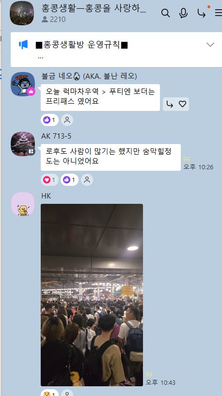 홍콩교민들의 카톡 단톡방, '홍콩생활방'에서도 귀홍상황이 공유되었다.