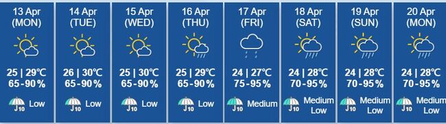 홍콩은 이번 주 초 무더위가 예상되며, 도심 지역은 화요일과 수요일에 기온이 30°C까지 오를 것으로 전망된다. 이후 불안정한 기상 조건으로 인해 주 후반에는 소나기가 내릴 것으로 예상된다.