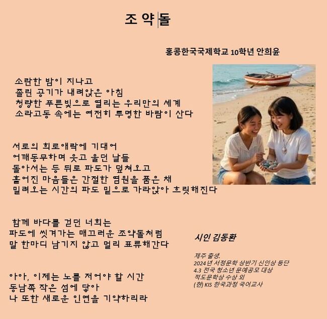 청소년 시절, 함께 웃고 울던 친구들과의 이별을 준비하며 성장의 길목에 선 학생들은 어떤 선택을 할 수 있을까요? 아직 어린 나이임에도 불구하고, 이제는 타인이나 환경에 기대지 않고 자신의 의지로 ‘노를 저어야 할 시간’임을 깨달은 희윤 학생의 모습이 참으로 대견하고 멋져 보입니다. 막막한 바다 위에서 스스로 방향을 잡으려 마음을 다잡는 그 당당함은, 최소한 방황하던 그 시절의 저보다는 훨씬 단단해 보입니다.